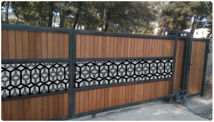 ประตูอลูมิเนียมลายไม้ผสมสแตนเลสฉลุลาย
