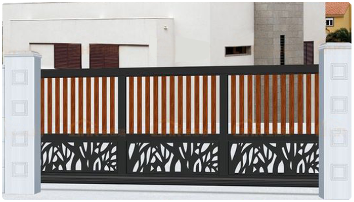 ประตูอลูมิเนียมลายไม้ผสมสแตนเลสฉลุลาย