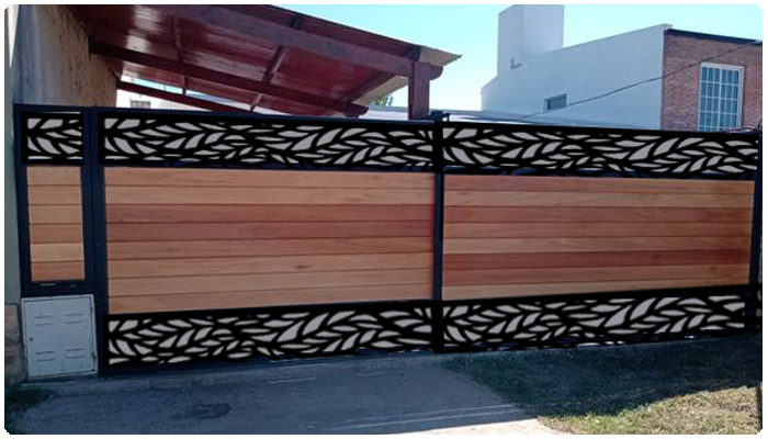 -ประตูอลูมิเนียมลายไม้ ( อลูมิเนียมเลือกสีลายไม้ได้ ) -โครงโดยรอบทำด้วยสแตนเลสพ่นสีอบ Powder coat -หรือเป็นเนื้อสแตนเลสเงา -ช่องด้านบนและด้านล่างใส่งานฉลุลายได้ ( งานฉลุลายสามารถเลือกลายได้ )