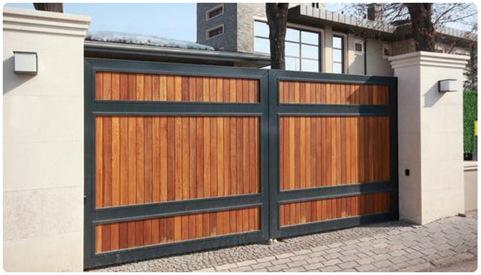 ประตูอลูมิเนียมลายไม้ผสมสแตนเลส