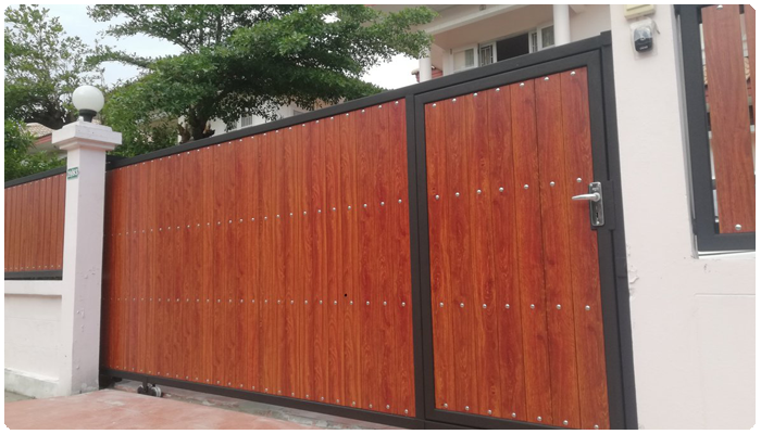 ประตูอลูมิเนียมลายไม้ผสมสแตนเลส