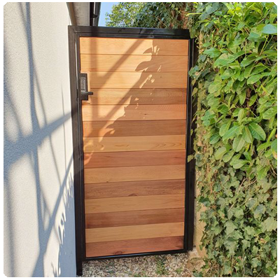 -ประตูอลูมิเนียมลายไม้ ( อลูมิเนียมเลือกสีลายไม้ได้ ) -โครงโดยรอบทำด้วยสแตนเลสพ่นสีอบ Powder coat -หรือเป็นเนื้อสแตนเลสเงา