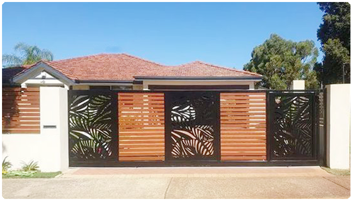 ประตูอลูมิเนียมลายไม้ผสมสแตนเลสฉลุลาย