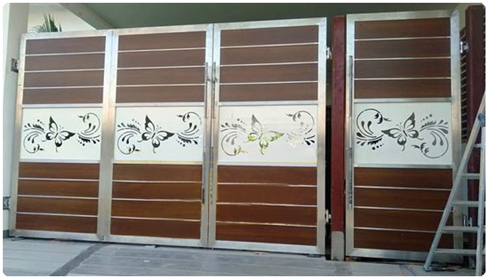 ประตูอลูมิเนียมลายไม้ผสมสแตนเลสฉลุลาย