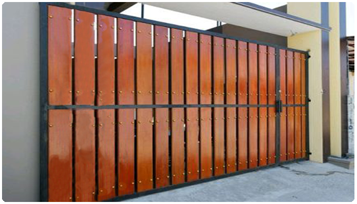 ประตูอลูมิเนียมลายไม้ผสมสแตนเลส