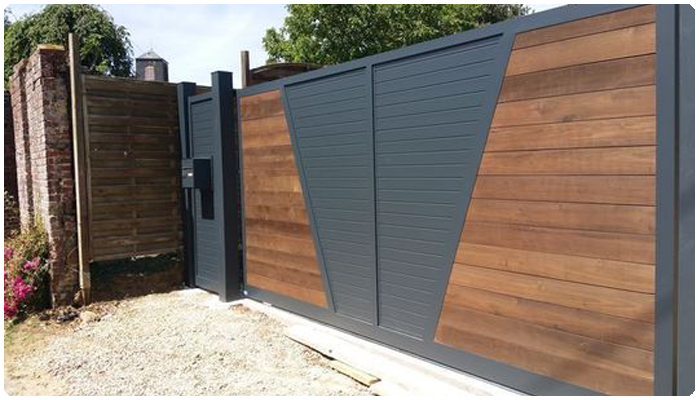 ประตูอลูมิเนียมลายไม้ผสมสแตนเลส