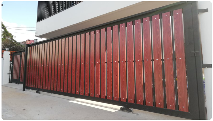 ประตูอลูมิเนียมลายไม้ผสมสแตนเลส