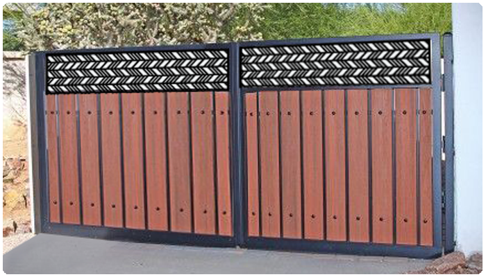 ประตูอลูมิเนียมลายไม้ผสมสแตนเลสฉลุลาย